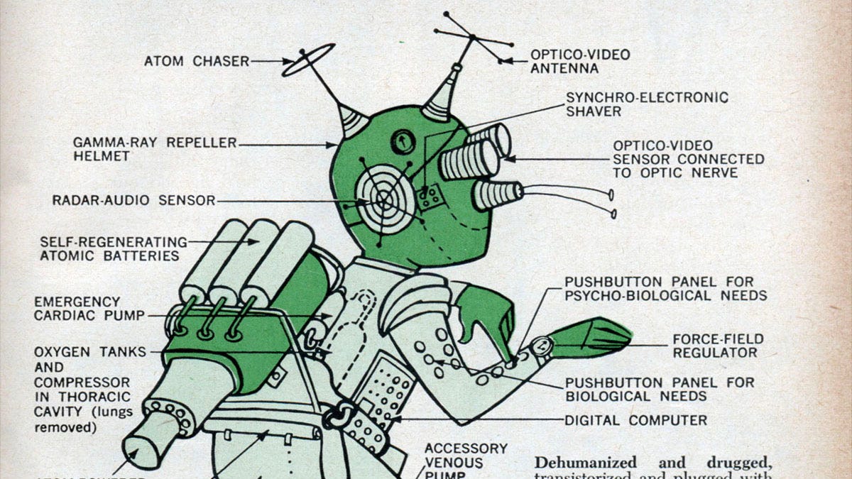 At the dawn of the Space Age, we didn’t know the full details, but we did know that it wouldn’t be easy to survive the hostile alien environments that would await us on the surfaces of Moon and Mars, or just in traveling through the vacuum of space. This is why in November of 1963, two doctors worked with Popular Science to create a new vision for humanity, that of cyborgs capable of handling the rigors of life beyond the creature comforts of our world.